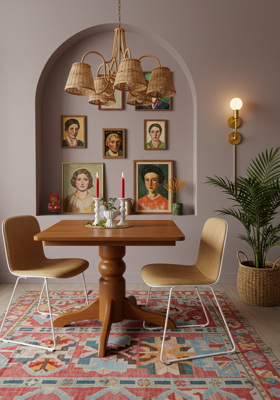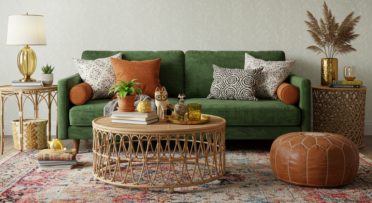 This is a worldly, whimsical, and free-spirited approach to design that mixes natural materials, organic textures, and often includes well-worn vintage pieces. Wicker, rattan, and macrame are cornerstones of the look. Greenery and tropical elements (hello palm fronds!) bring life to these spaces.